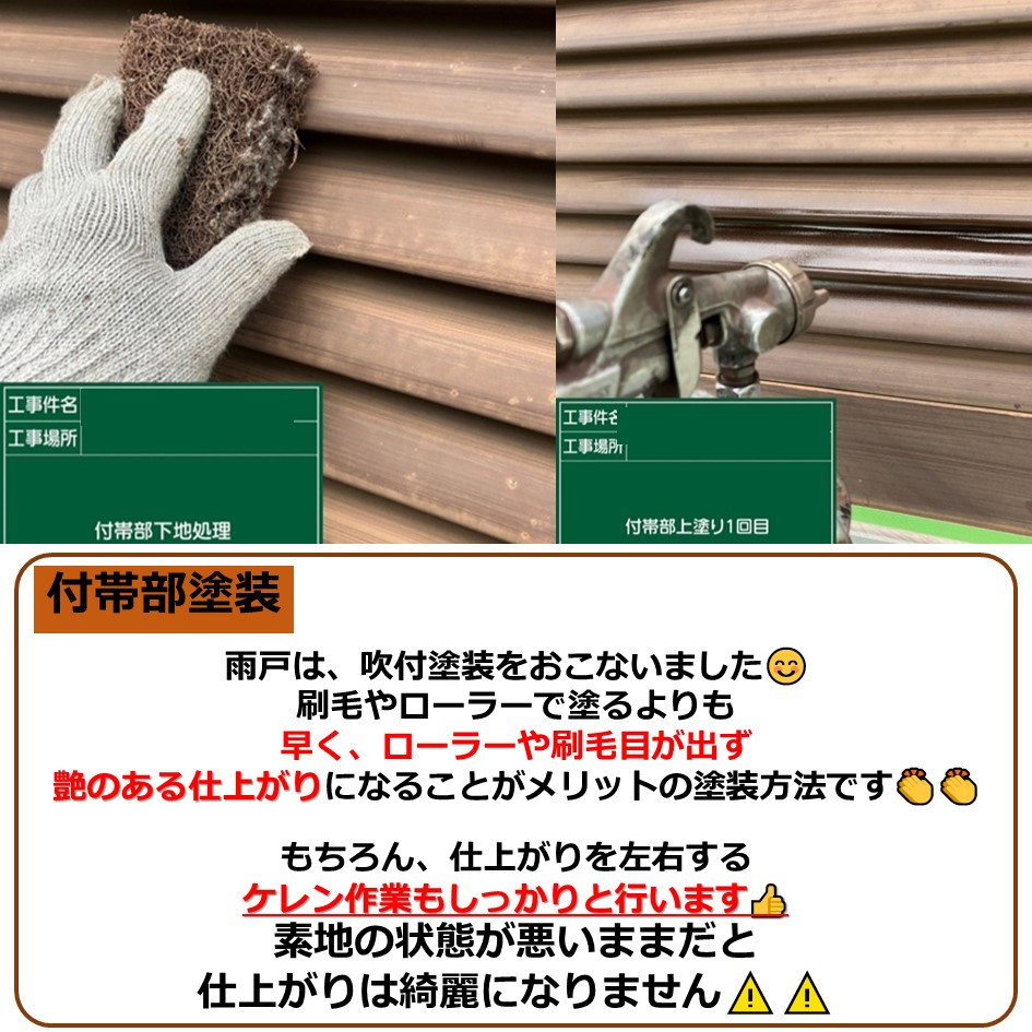 雨戸は、吹付塗装をおこないました😊