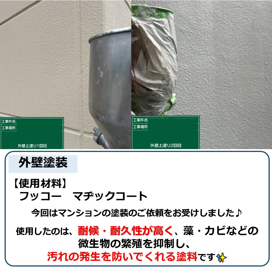 使用したのは、耐候・耐久性が高く、藻・カビなどの微生物の繁殖を抑制し汚れの発生を防いでくれる塗料です✨