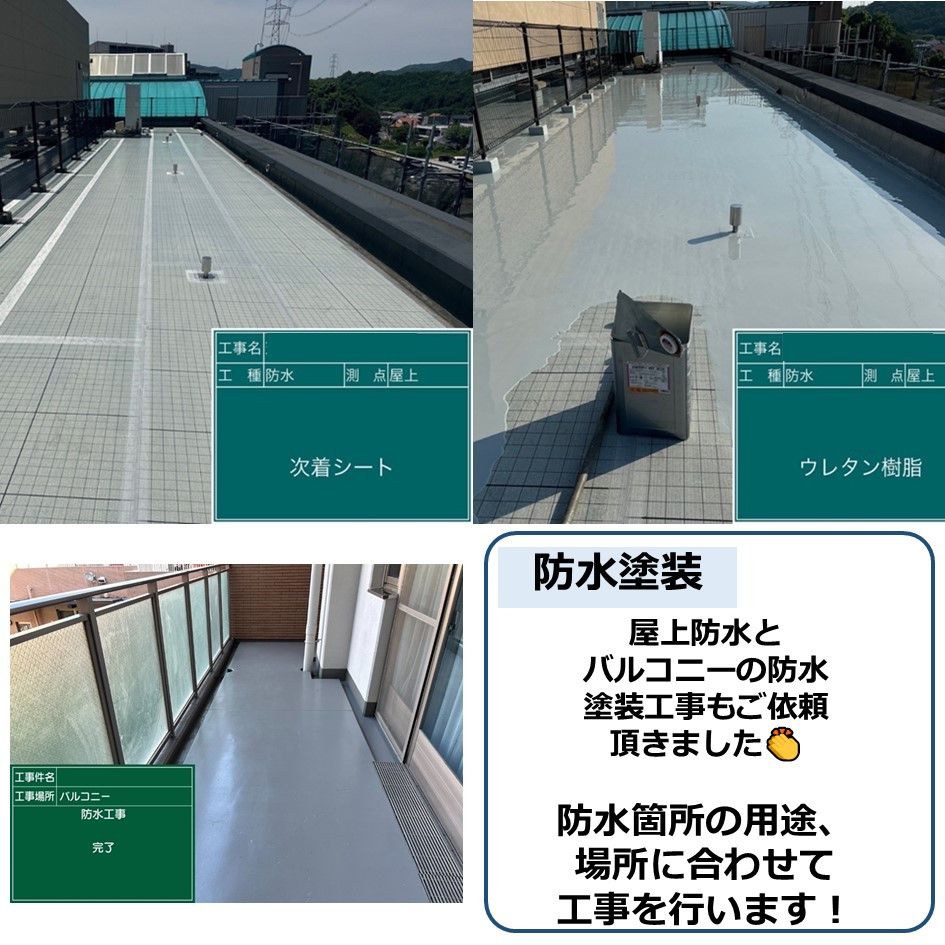 防水箇所の用途、場所に合わせて工事を行います!