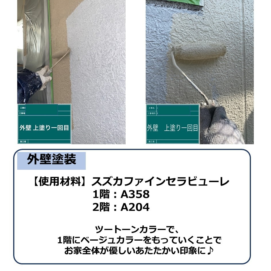 ツートーンカラーで、1階にベージュカラーをもっていくことでお家全体が優しいあたたかい印象に生まれ変わりました♪