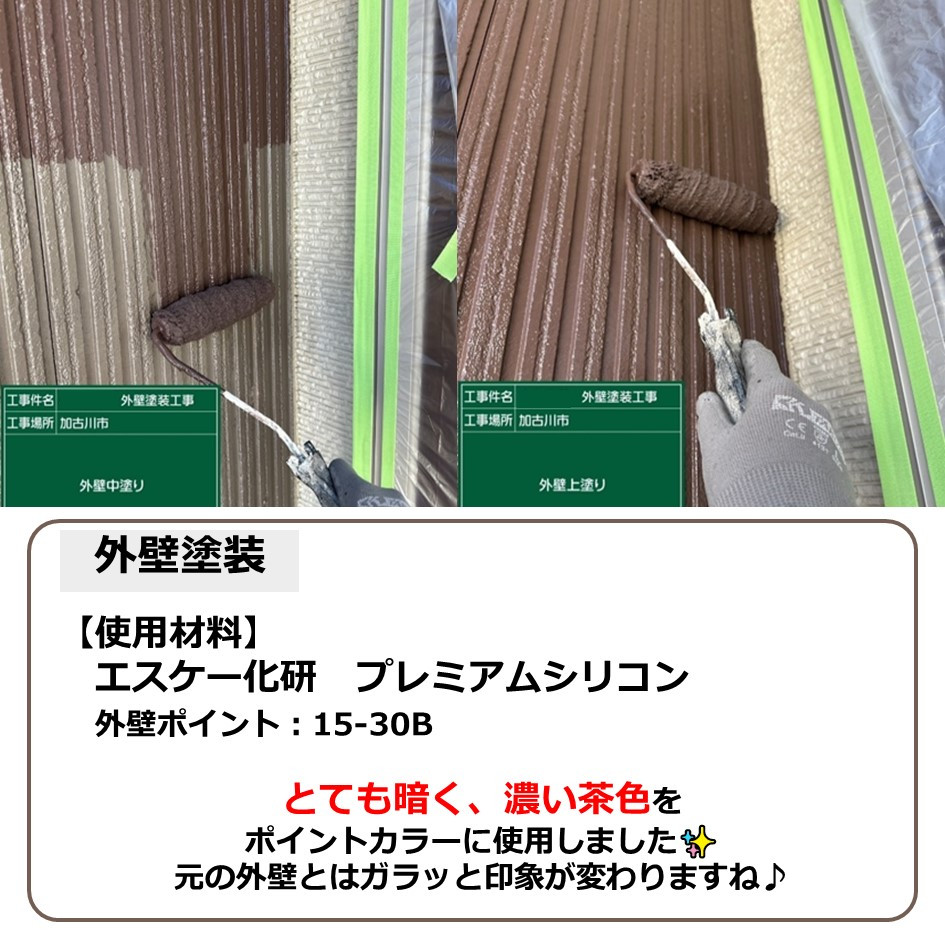元の外壁とはガラッと印象が変わりますね♪