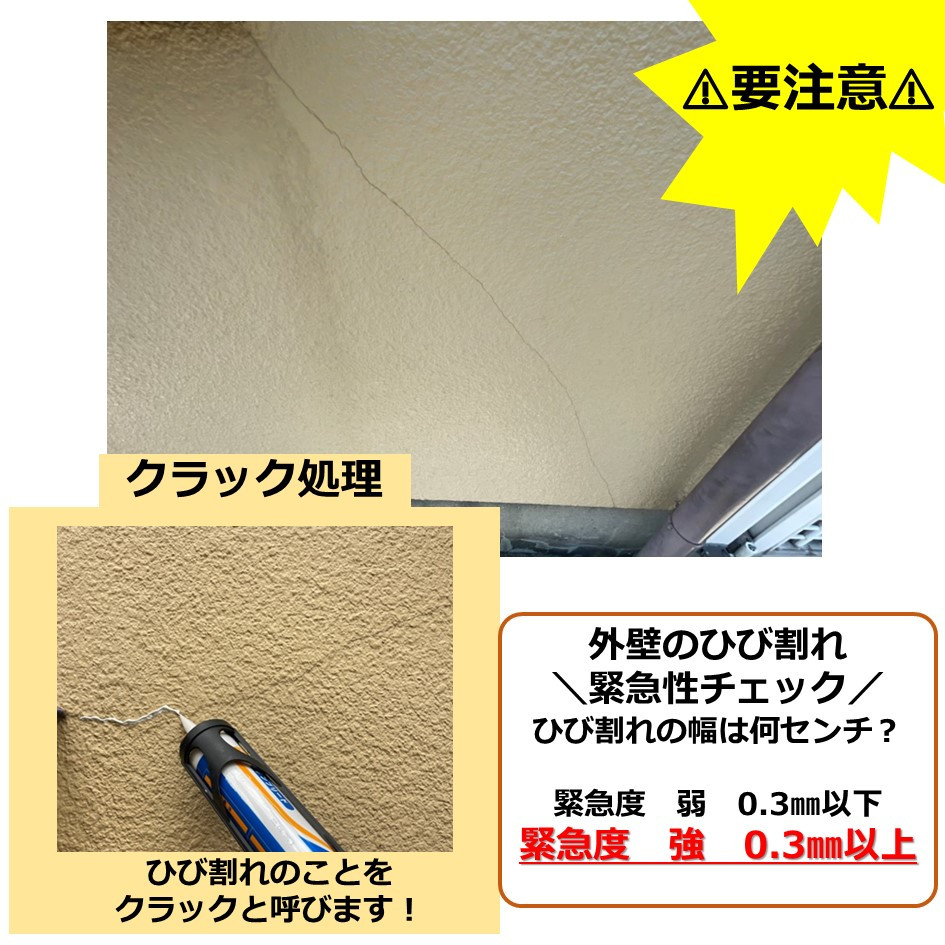 このクラックの幅が3㎜以上のものは緊急性の高い劣化になります💦