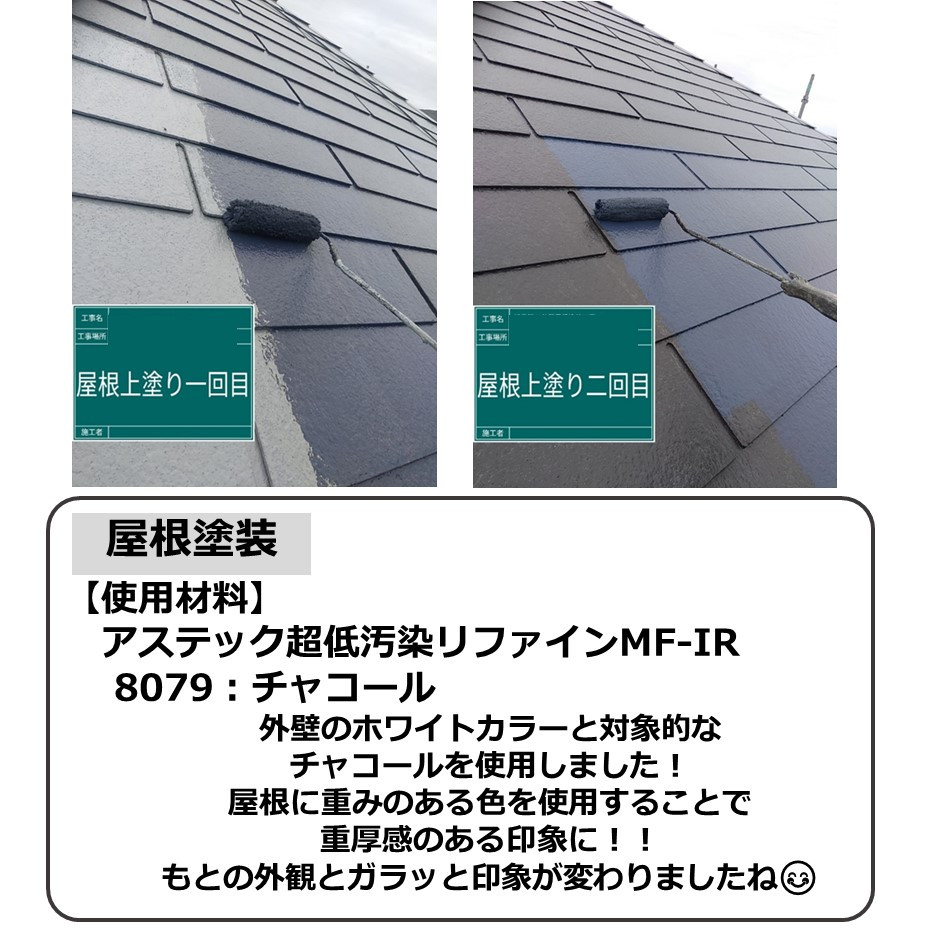 対象的な2色で、屋根に重みのある色を使用することで、重厚感のある印象に!!