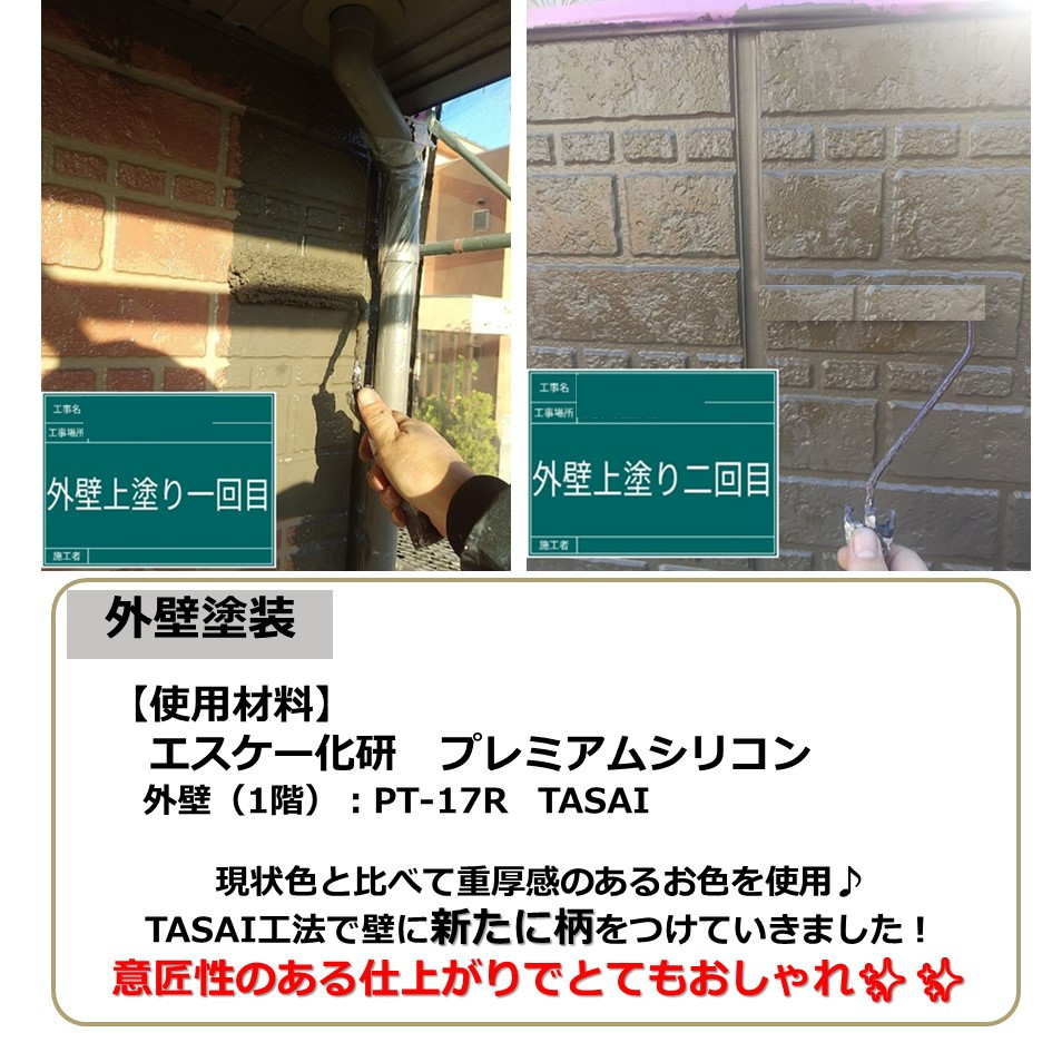 TASAI工法で外壁に柄をつけて仕上げることで、おしゃれに仕上がりました👍