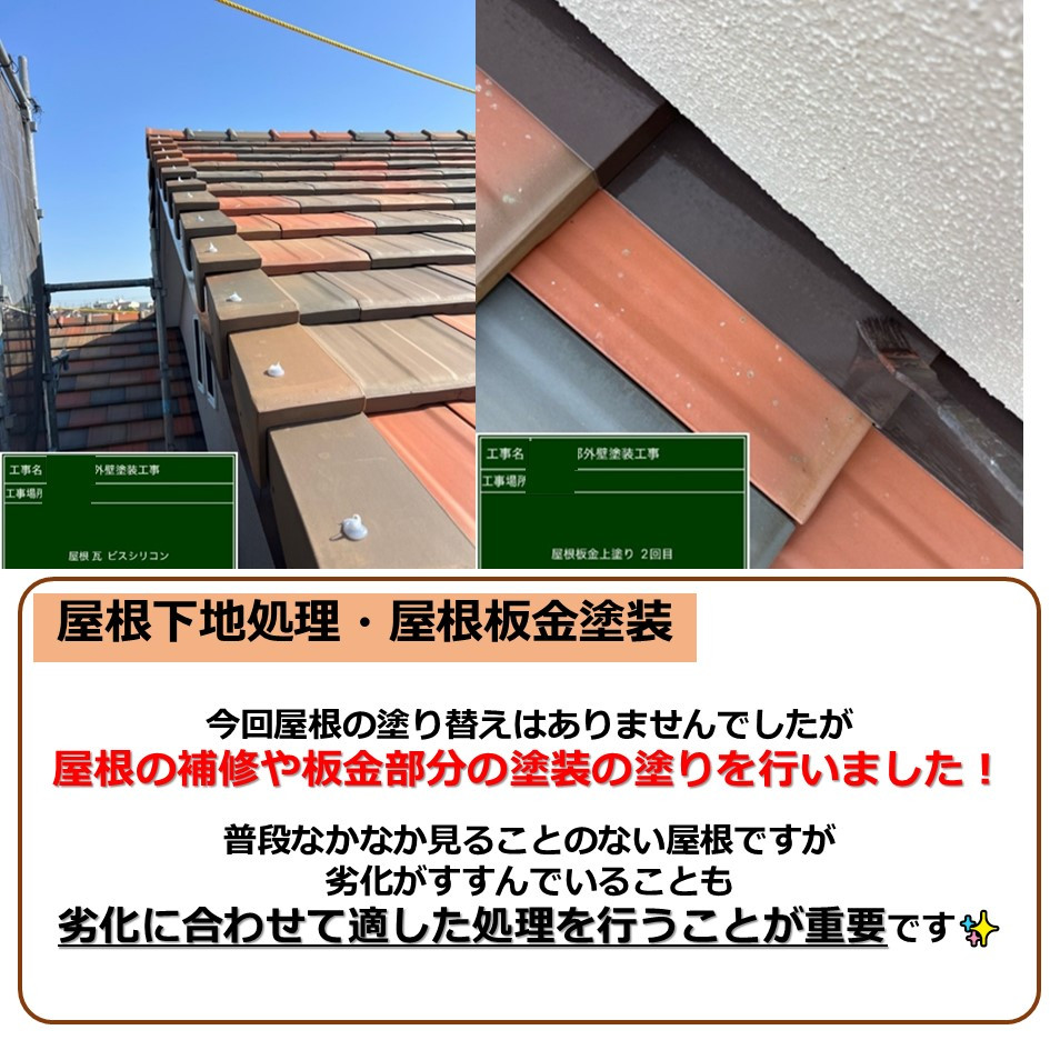 今回屋根の塗り替えはありませんでしたが屋根の補修や板金部分の塗装の塗りを行いました!