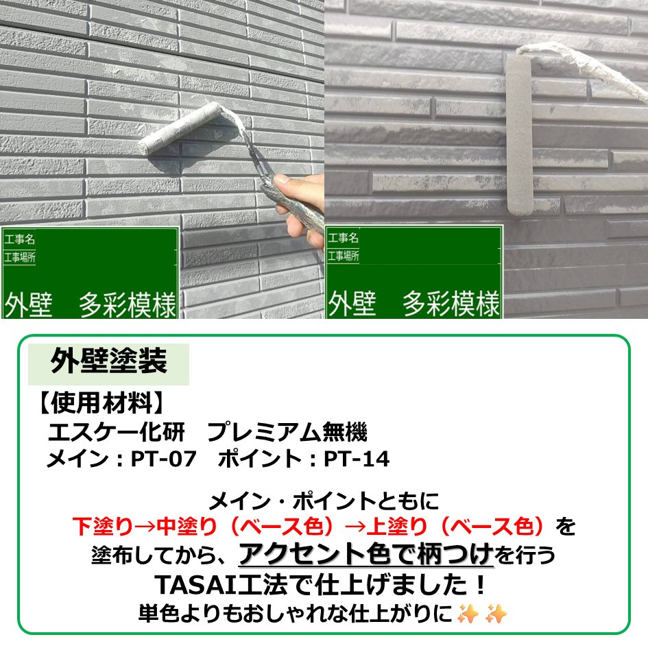 塗布してから、アクセント色で柄つけを行うTASAI工法で仕上げました!