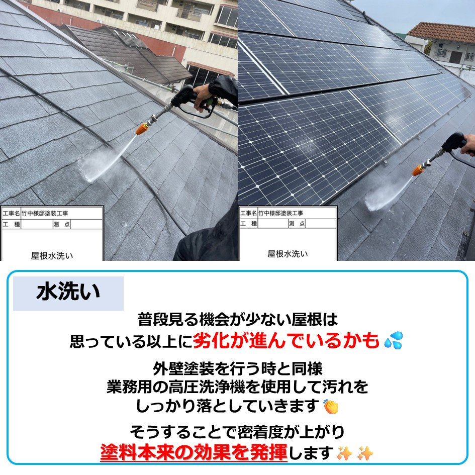 外壁塗装を行う時と同様、業務用の高圧洗浄機を使用して汚れを