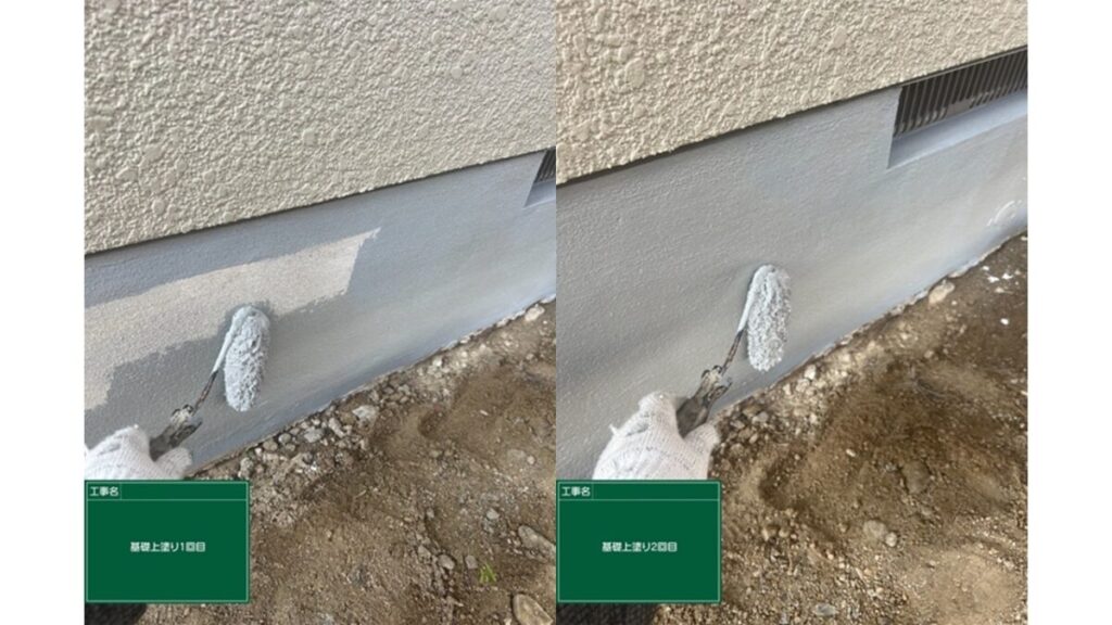 その他に基礎も塗装をし、塗装前は黒い汚れやシミが付いていましたが、今回は専用塗料で塗装を行い、新築のようにきれいになりました👍️