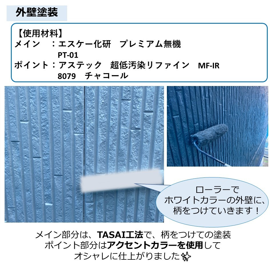 兵庫県姫路市で「エスケープレミアム無機TASAI・アステック 超低汚染リファインMF-IR」を使用した施工物件の紹介です。