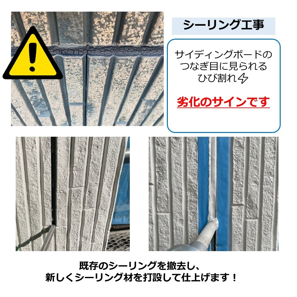 シーリングの寿命は7年~10年といわれています⚠